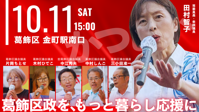 【お知らせ】10月11日(土)葛飾区・金町駅南口にて日本共産党街頭演説を行います