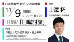 統一協会、大軍拡・軍事費、平和外交、賃上げ、消費税・インボイス、酪農危機、学費・給食費、保育基準、夫婦別姓、原発、学術会議
