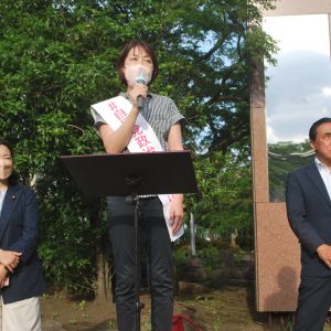 渡辺氏は「小池都政に審判を下す絶好の機会なので、支援をしていきたいし、ぜひ頑張ってください」と激励。駒井氏は「大阪でも早速募金を呼び掛けています。心ひとつにして、必ず東京から勝利を切り開きましょう」と語りました。