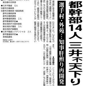 都幹部の不動産業界への天下りは、大型開発や東京五輪招致、お台場カジノ構想を打ち出した石原慎太郎知事時代から増えはじめ、大型開発とカジノ検討に固執する小池都政下でも続いています。