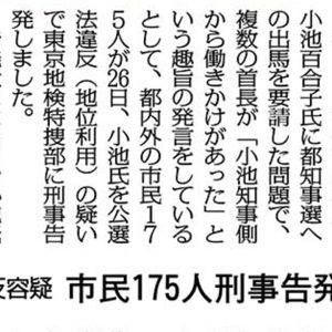 24日の討論会では、かつて「築地は守る」と述べていたことについて問われ、小池氏は「築地の定義がよく分かりません」としどろもどろでした。(つづく)