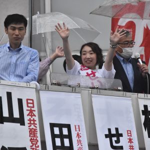 府中市選挙区では無所属「府中から都政を変える会」の甲田直己候補(日本共産党支援)が、「自民党の裏金政治と財界優先の都政で、市民生活は置き去りにされている。府中から都政を転換させよう」と述べました。