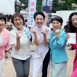 LGBTQ+の当事者やアライ(理解者、支援者)の有志が行った「レインボー街宣」では、蓮舫氏が「東京からレインボーの道を切り開く選挙にしませんか」と強調。持続可能な社会保障制度をつくり「分断ではなく共に守る都政をやりたい」と訴えました。参加者からは、「差別を許さない都知事を」「候補者アンケートでは、同性婚に賛成と表明しているのは蓮舫さんだけ」「多様性が尊重される東京をつくるために蓮舫さんに頑張ってもらいたい」などの声が上がりました。