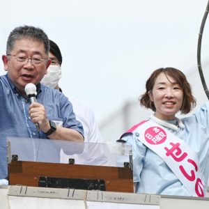 蓮舫氏は選挙戦を通じ「若い人を徹底的に支援する東京をつくりたい」と訴えてきました。「若者の収入が増えれば税収が増える。介護・医療保険の担い手が増えれば持続可能な社会保障につながり、シニアの安心につながる。若者支援からシニアの安心をつくろう」と呼びかけました。
