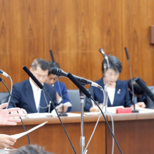 小池氏と山添氏は、検証が終わらないことは検討会を開かない理由にならないと批判。国交省が検討会の座長に進捗(しんちょく)を報告していると説明すると、宮本氏は「座長に報告する範囲でも住民や議員に説明すべきだ。国はやる気がないように見える」と強調しました。