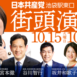 夕方には新宿駅東口で坂井和歌子衆院東京比例候補、吉良氏と山添拓参院議員が語る街頭トークを開催。通りすがりの市民からは「消費税を上げないでほしい」との声が上がりました。