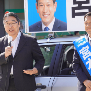 日本共産党の山添拓政策委員長・参院議員は20日、東京都内4カ所を駆け巡って街頭演説し、「企業・団体献金を受け大企業の利益優先、国民の暮らしは二の次という自民党政治を変えよう。大企業にモノを言える共産党を比例代表で伸ばし、若者も高齢者も豊かで安心できる社会をつくろう」と呼びかけました。