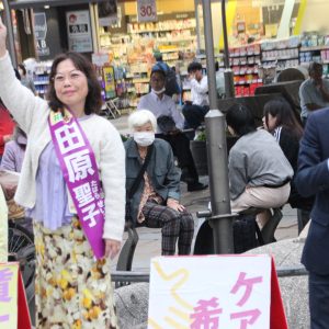 坂井和歌子候補は世田谷区、杉並区などで「物価高騰で米の値段も上がり、暮らしは大変ですよね」と問いかけ、物価を下げる消費税減税を訴えました。