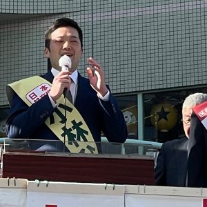 もぎ候補は「自民公明オール与党の前区政から区民のくらし優先の区政に転換する」と訴えました。