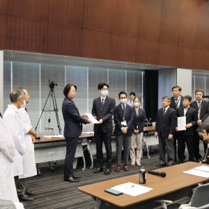 JR東海のリニア中央新幹線(品川―名古屋)事業をめぐり、地下40㍍以深の大深度地下で進むトンネル掘削工事(調査掘進)の直上付近に位置する町田市小野路町の民家の庭に、気泡と水が噴出した問題で、日本共産党国会議員団東京事務所は15日、衆院議員会館(千代田区)で国土交通省と環境省、厚生労働省に、工事との因果関係について聞き取りを行いました。同党の吉良よし子、山添拓の両参院議員、池川友一都議、町田市などの地方議員、リニア沿線ルートに関係する住民らが参加しました。