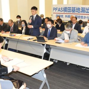 地下40メートル以深の大深度地下を掘るリニア中央新幹線の調査掘進が行われている東京都町田市の民家の敷地から気泡と水が噴出した問題に関し、日本共産党の山添拓参院議員、町田市議団、品川区議団と地域住民は25日、国交省から聞き取りを行いました。JR東海が、工事が原因と認めながら一部掘進を行ったことや、北品川工区で調査掘進から本格的な掘進に移行することについても国交省をただしました。