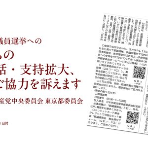 小池氏は、吉良議員が18年12月の国会で「学校給食費を自治体が無償にしてもよい」との答弁を引き出し、全国で無償化をすすめる突破口をつくったことや、この質問を力に党都議団が自公の妨害をはねのけて学校給食無償化を実現したこと、池川都議が髪形の「ツーブロック」や下着の色を規制する都立高校の校則を是正に導いたことなどを紹介。吉良氏は、核廃絶、学費の値上げ阻止・無償化などの仕事も「引き続きやらせてください」と演説し、池川氏は、学校給食無償化が実現したように「都政が動けば暮らしも良くなるし国政を動かす力になる」と支持を呼びかけました。