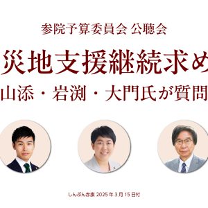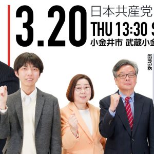 東京都小金井市議選(23日投開票、定数24)は16日告示されます。日本共産党は森戸よう子(68)、水上ひろし(64)、たゆ久貴(36)=いずれも現=の3氏を擁立し、現有3議席の確保を目指します。市議選には共産党3人をはじめ、自民党3、公明党3、立憲民主党3、参政党1、国民民主党1、れいわ新選組1、生活者ネット1など30人前後が立候補を予定しています。