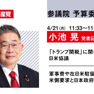 【国会質問】4/22(火)山添拓 党政策委員長・参院議員が参議院・外交防衛委員会で質問します お知らせ 0 2025-04-22 4月22日(火)11:27~12:05参議院 外交防衛委員会山添拓 党政策委員長・参院議員が質問します 質問テーマ🔻在日米軍駐留経費🔻日本インドネシアEPA インターネット審議中継はこちらから