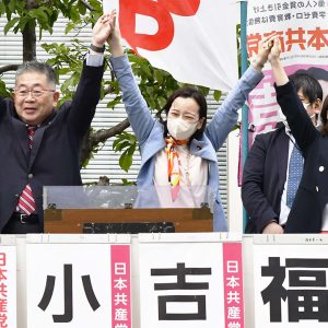 マイクを握った後援会メンバーの小林幹典さん(40)は点字ブロックや音響式信号機などの整備を都議会で取り上げて推進してきた党都議団の成果を示して、「共産党を引き続き野党第1党として働かせてください」と呼びかけました。