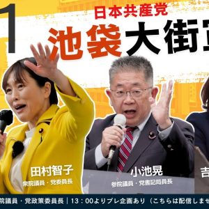 日本共産党から大山とも子都議、党区議団が参加。大山氏は「都と新宿区が一緒になって財界ファーストで再開発を進めている。こんな政治を許してはいけない。再開発を中止させるため頑張る」と話しました。