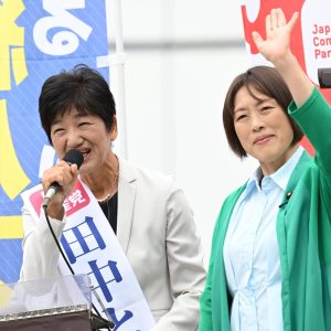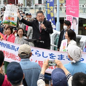 都政については、「共産党が提案すれば都政が動く」とし、学校給食無償化、シルバーパス値下げ、補聴器購入助成、水道料金の引き下げなどの実績を紹介。自民、公明、都民ファーストが妨害してきたにもかかわらず、「自分たちの手柄」として大宣伝していることを批判し、「間違いなく、都民の運動と日本共産党の共同の成果です」と訴えました。