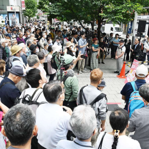平和の問題について、大軍拡にきっぱり反対をつらぬき、東アジアに平和をつくる外交にとりくんでいる党の立場を訴え。戦後80年たつのに、首都のど真ん中に巨大米軍基地を置いている国は日本だけだと告発し、「アメリカ言いなりの政治はもうやめよう。対等・平等・友好の日米関係を、平和を願う1票は日本共産党に」と訴えました。