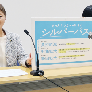 練馬区内を巡り演説。修学旅行や学用品、通学定期の無償化などの実現を目指し「お金の心配がなく子どもたちが生き生きと学べる学校環境を」と訴えました。