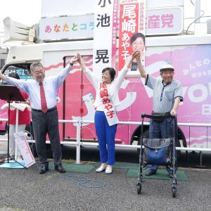 日本共産党の志位和夫議長は15日、江戸川区の原純子候補(現)と、江東区の大つきかおり候補(新)の応援に立ちました。
