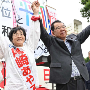 東京都議選で定数2の大激戦区・日野市では、市民と野党の共同候補で日本共産党の清水とし子都議候補と市民応援団が15日、京王線高幡不動駅前で宣伝しました。立憲民主党の大河原雅子衆院議員や4月の日野市長選に立候補した有賀精一さんらが応援演説しました。
