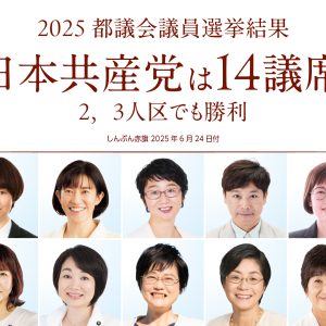 消費税減税など物価高騰対策を巡り大激戦となった東京都議選(総定数127)は22日投開票されました。日本共産党は14人が当選しました。