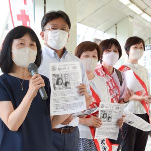 再選を果たした清水とし子都議と支援者は、こう喜び合いました。「市長選」とは、広範な市民と共産党がともにたたかったものの惜敗した4月の選挙のこと。都議選では、その市長候補だった有賀精一さんらでつくる「市民応援団」が清水さんを支援しました。応援団メンバーの窪田之喜さんは「競り合いを共同の力で勝ち切れた」と笑顔。