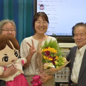 そねさんは「これで大手を振って街を歩けます」と笑顔。ねぎらいの拍手に包まれました。