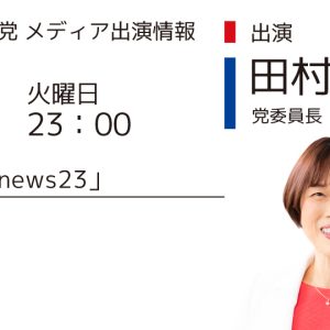 日本共産党の田村智子 委員長・衆議院議員が出演します。