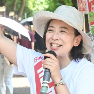 参院選公示日の3日午後3時すぎ、東京都中野区のJR中野駅北口の街頭演説。日本共産党の吉良よし子参院東京選挙区候補が「政治が動いた」と、6月に文科省が私立大学に入学金の二重払いを改善するように通知を出したことを伝えました。その瞬間、目の前を歩いていた下校中の高校生から拍手が起こりました。