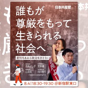 3期目となる吉良よし子議員は「国民の声を届け抜く6年にしていきたい」と語りました。参院選で差別や排外主義、分断をあおる政党や政治家が増えてきたと指摘。文部科学省が博士課程に進学する学生の生活支援制度を留学生に適用しない方針を決定したことを挙げ、「政府も差別、排外主義を助長していることは問題。教育無償化の実現をはじめ、排除ではなく、すべての人を支える政治を目指したい」と強調しました。