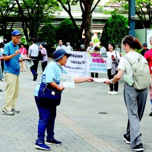 改選後の初めての都議会定例会を前に、都立高校入試に英語スピーキングテスト(ESAT―J)結果の活用中止を求める「夏の市民大集会」が8月20日、都議会(新宿区)の会議室で開かれ、教育関係者や保護者らは新都議とともに公正・公平性に欠ける同テストの中止に向けて決意を固めました。集会にはオンラインを含めて約100人が参加しました。