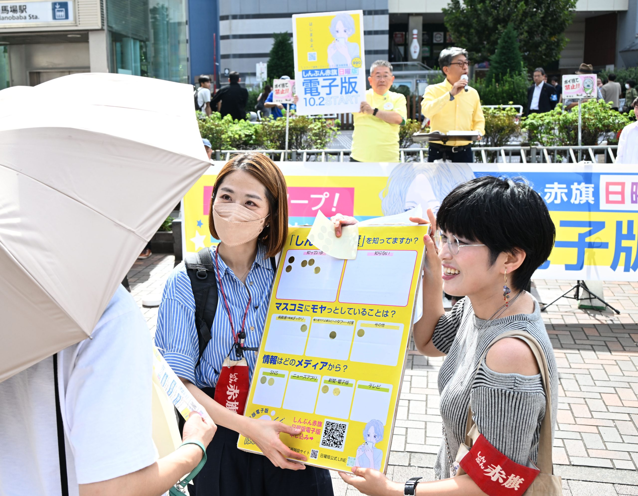 日本共産党は3日、消費税減税・インボイス廃止をもとめる全国いっせい宣伝を行いました。東京都内では、田村智子委員長、吉良よし子参院議員、里吉ゆみ都議会議員が上野駅前にたち、「臨時国会を消費税減税の国会にしよう。みなさん、一緒に声をあげてください」と訴えました。街頭では、消費税減税・インボイス廃止を求める署名にも取り組みました。