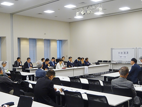 東京の都心上空を飛行する羽田空港の新ルートの見直しを求めて、超党派の野党国会議員でつくる「羽田低空飛行見直しのための議員連盟」は15日、国土交通省の担当者から聞き取りを行いました。日本共産党から小池晃書記局長・参院議員、山添拓政策委員長・参院議員が参加。沿線の地方議員や住民も同席しました。