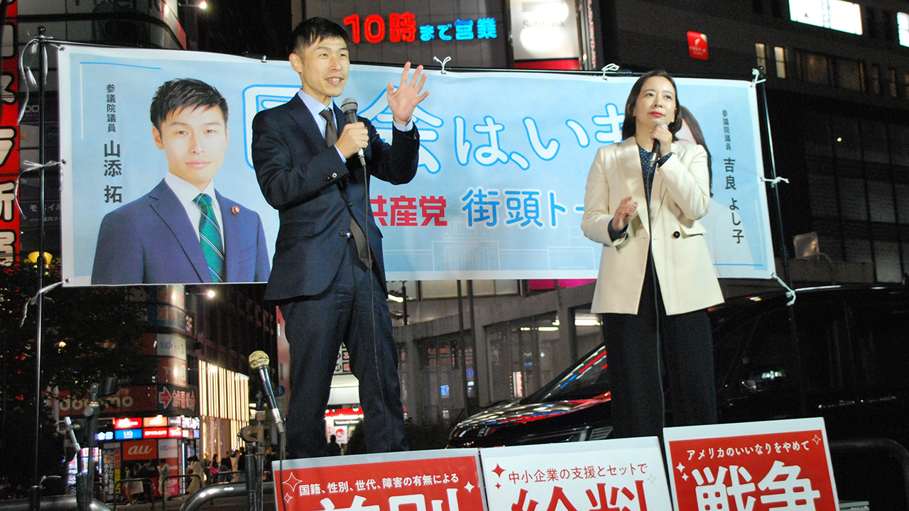 自民党が日本維新の会と衆院比例定数削減を合意したことについては、「多様性を求める声が国会では少数派だ。そういう声を切り捨てていくのが定数削減だ」(仁比聡平参院議員)、「女性、LGBTQ(性的少数者)、障害者、子どもなど社会的弱者の声が切り捨てられるのではないか。希望のもてる政治に変えるためにがんばり抜く」(吉良よし子参院議員)と決意を述べ、ジェンダー平等を前に進めるために力を合わせようと呼びかけました。