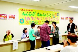 東京都の心身障害者への医療費助成の対象拡大を求め、都内の障害者団体などでつくる「全都連絡会」は7日、3回目となるシンポジウムを都議会会議室で開きました。小池百合子知事宛ての要望書を都福祉局の担当者に手渡しました。松谷いづみ・福祉局事業調整担当部長は「真し ん摯し に受け止める」と述べました。