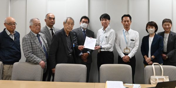 武山健二郎会長が申し入れ書を手渡し、▽都市農業振興▽学校給食での地場産有機野菜の活用▽有機フッ素化合物(PFAS)への対策▽米の安定供給を政府に要請すること―など求めました。日本共産党の大山とも子、藤田りょうこ両都議が同席しました。