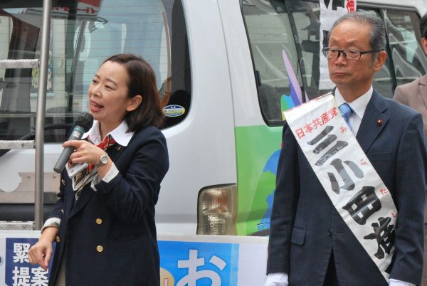 日本共産党が4議席から5議席への前進をめざす東京都葛飾区議選(定数40)で告示日の2日、山添拓政策委員長・参院議員、吉良よし子参院議員が応援演説し、共産党の5候補勝利を訴えました。定数40に65人が立候補する大激戦です。