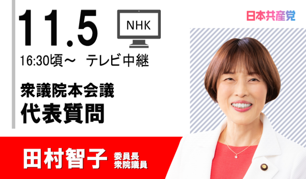 【国会質問】11/5(水)田村智子 委員長・衆院議員が衆議院本会議で代表質問します お知らせ 0 2025-11-04 11月5日(水)16:30頃~衆議院 本会議【国会質問】11/5(水)田村智子 委員長・衆院議員が衆議院本会議で代表質問します NHK中継があります インターネット審議中継はこちらから