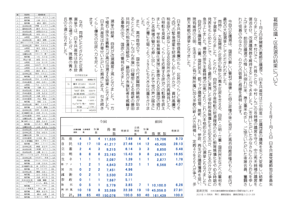 立憲民主党は計9215票(6.14%)を獲得し、擁立した4人中、前回と同数の3人が当選しました。