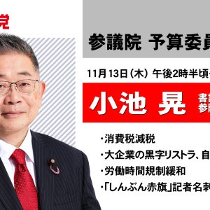 【ミニビラ】「台湾有事─危機取り除く外交努力を」 ニュース 0 2025-11-13 高市政権が発足し、初めての衆議院予算委員会質問に田村智子委員長が立ちました。 ミニビラは、11月7日に首相がおこなった「存立危機事態」答弁、今後の大軍拡について撤回を求めたものを質問を紹介するものです。 ぜひ、ご活用ください。 251112田村智子委員長_予算委員会質問ダウンロード