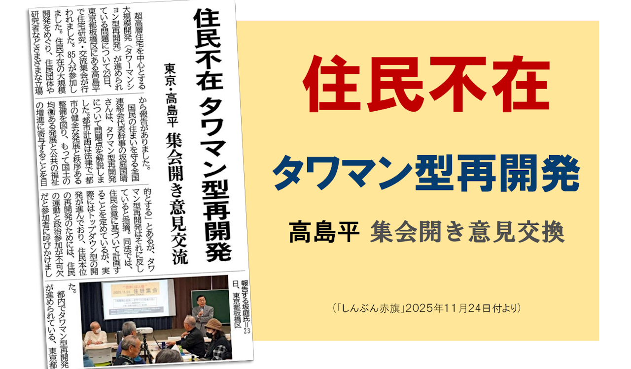 主催者を代表してあいさつした東京地評の矢吹義則議長は「オスプレイの配備は横田基地の問題だけでなく、日本全国の問題だ。欠陥機のオスプレイを飛ばすことは許されない」と強調。高市早苗政権の大軍拡への暴走を市民の力で止めようと訴えました。
