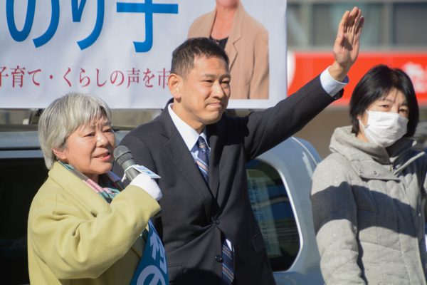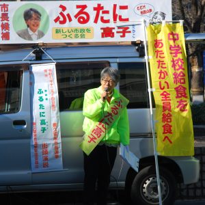 東京都東久留米市の市議補選(欠員2、立候補3人、14日投開票)が告示された7日、日本共産党の北村のり子候補(66)は、「コミュニティバスの実現、自然を壊す都市計画道路の見直しなど、死去した息子(北村龍太市議)がやり残したことを引き継ぎます。温かい中学校給食や教育負担の軽減、補聴器購入費補助、公立保育園の存続などを実現したい。安心して生活できる東久留米をめざして全力を尽くします」と訴えました。