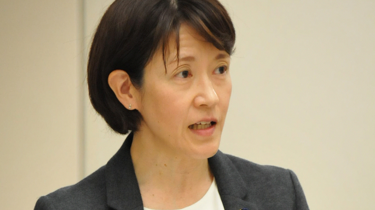 小池氏は赤リーフを手に、「長年、研究を重ねてこられたんですね。ここで世の中を変える実践に踏みだしてみませんか」と優しく語りかけました。