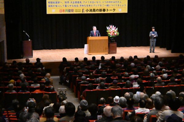 日本共産党の小池晃書記局長は18日、東京都品川地区委員会が同区内で開いた演説会「新春トーク」で、党の政策と政治を動かしてきた役割を訴え、会場から寄せられた多くの質問にも丁寧に答えました。