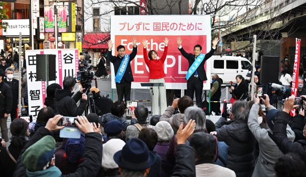 田村委員長は新宿駅東南口前で、宮本徹(前衆院議員)、谷川智行両比例予定候補とともに、「ぶれずに国民のために働く日本共産党を大きくしてほしい」と訴え、国会論戦から逃げ、支持率が高いうちに衆院を解散しようとする高市早苗首相に「国民の厳しい審判を下そう」と呼び掛けました。