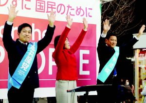 衆院解散・総選挙をめぐり緊迫した情勢のなかでの最初の日曜日となった18日、日本共産党の衆院比例東京ブロック予定候補の3氏が、新宿駅東南口前で勢ぞろいの街頭演説に立ちました。