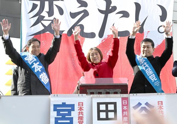 比例東京ブロック(定数19)の田村智子委員長、宮本徹(東京20区重複)、谷川智行(同4区重複)の各候補は27日午前、東京都豊島区の池袋駅西口で第一声を上げました。