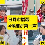 東京都町田市では、市長選と市議選が告示されました。市議選(定数36、立候補50人)には、日本共産党のとのむら健一(71)、細野りゅう子(71)、田中みほ(43)=以上現=、大野まこと(60)=新=の氏が立候補し、9日、町田駅で第一声の街頭演説がおこなわれました。現有4議席の確保をめざします。