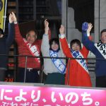 東京都日野市議選(15日投開票、定数24、立候補37人)で、日本共産党の、ちかざわ美樹(61)、わたなべ三枝(67)=以上現=、成瀬厚(55)、ながせ真由美(48)=以上新=の4候補は9日、現有4議席の確保を目指し、「暮らしを守る市政を実現しよう」よ呼びかけました。吉良よし子参院議員、清水とし子都議が応援に駆け付け訴えました。